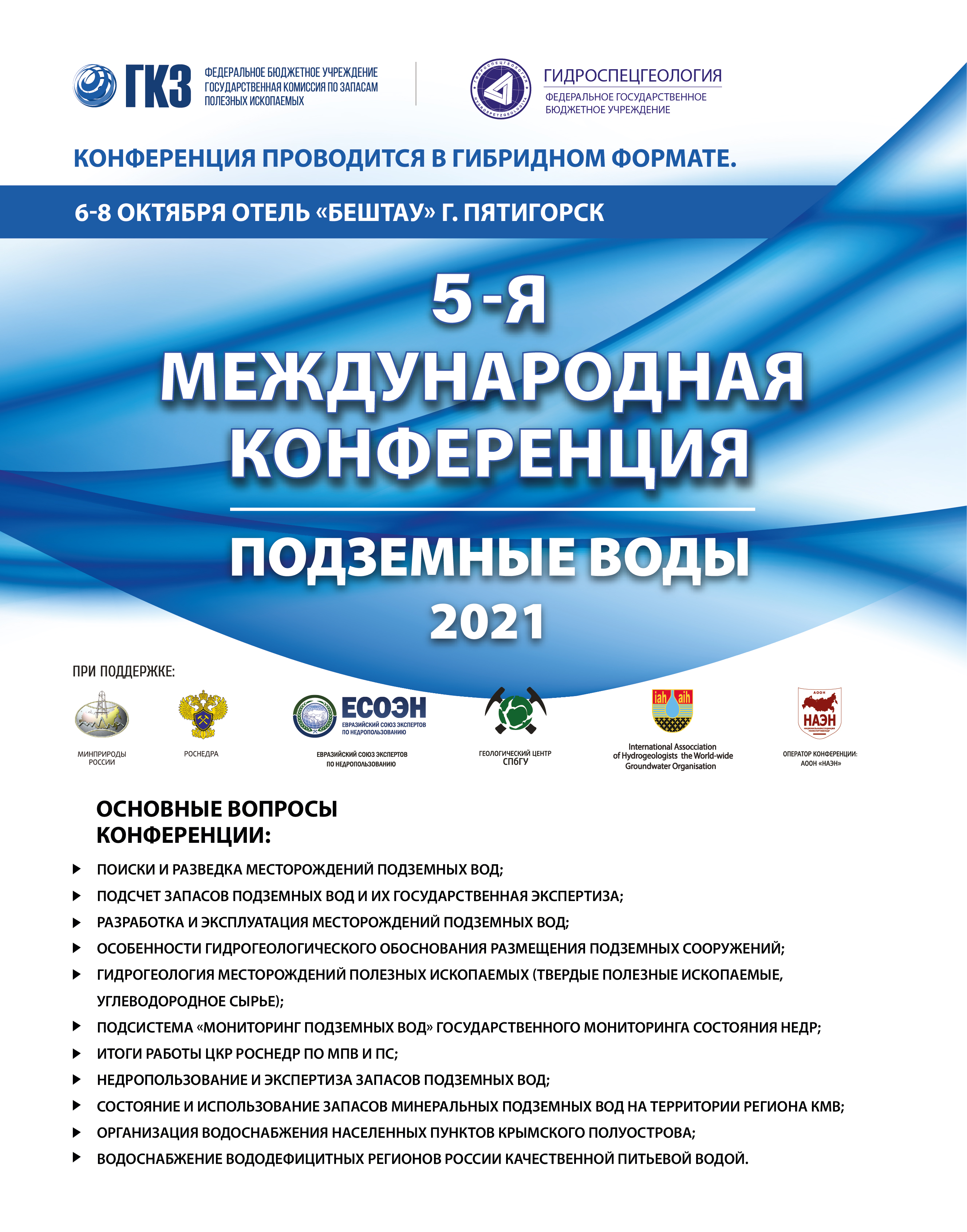 Конференция проводится при поддержке Федерального агентства по недропользованию (Роснедр), Геологического центра СПбГУ, Международной Ассоциации гидрогеологов, ЕСОЭН.